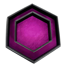 Keep your dice rolls organized and stylish with this hexagon-shaped dice rolling tray. The interior features fuscia felt, with a smaller central compartment perfect for rolling one or two dice at a time. Surrounding this area is a larger compartment designed for convenient dice storage. Need to roll a larger batch of dice? The lid doubles as a felt-lined rolling tray, giving you ample space for big rolls while keeping your dice safe and contained. Durable, functional, and sleek—this tray is the perfect companion for any tabletop game.
