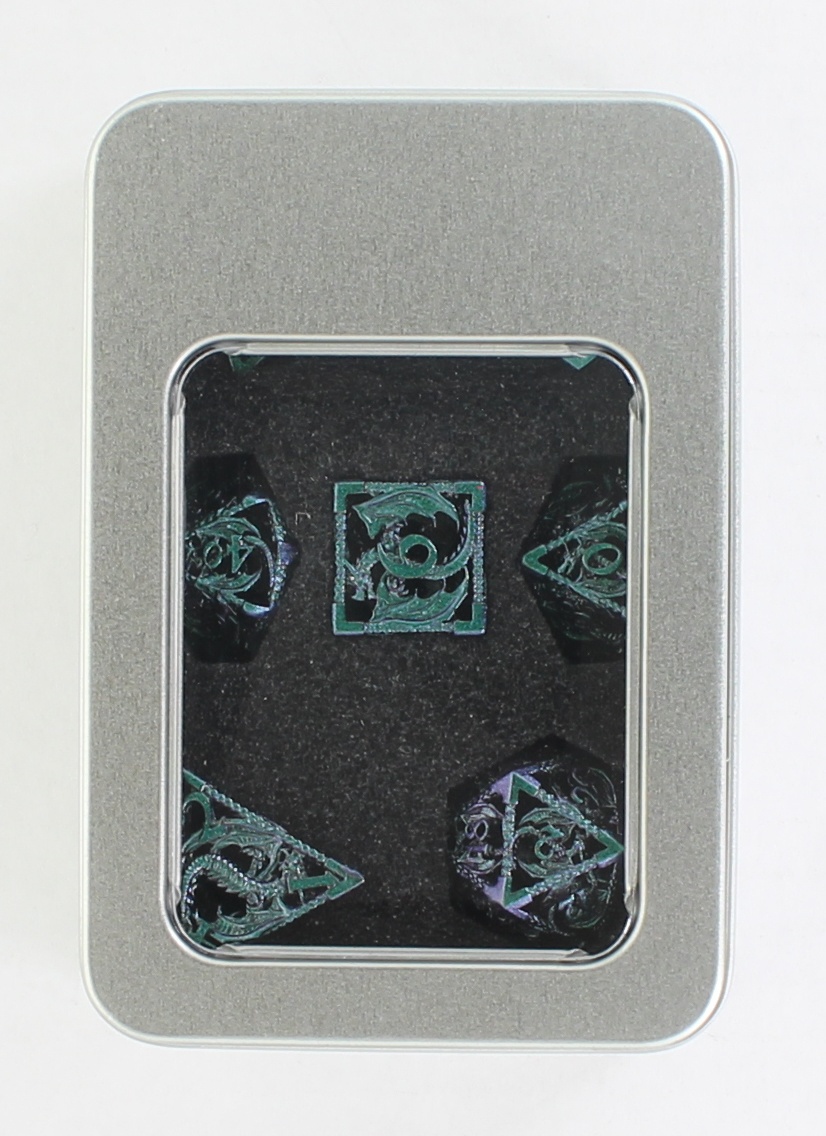 Hollow Metal Dragon B Green/Purple Set of 7 Dice