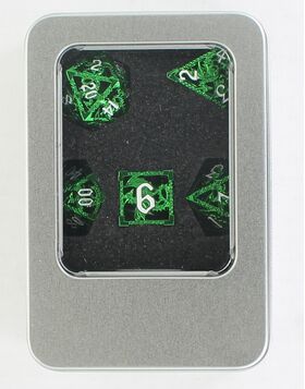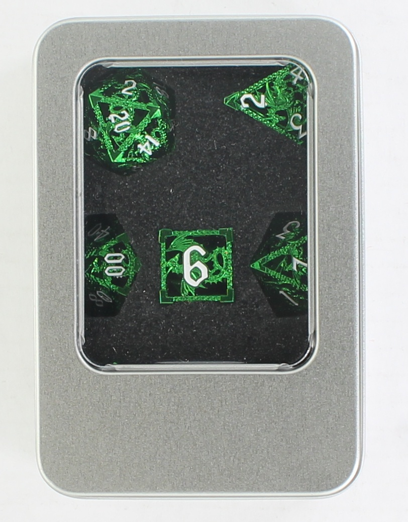 Hollow Metal Dragon E Green w/White Set of 7 Dice