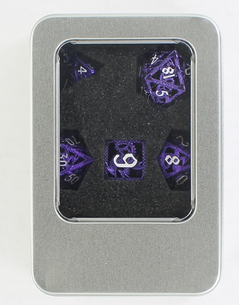 Hollow Metal Dragon E Purple w/White Set of 7 Dice