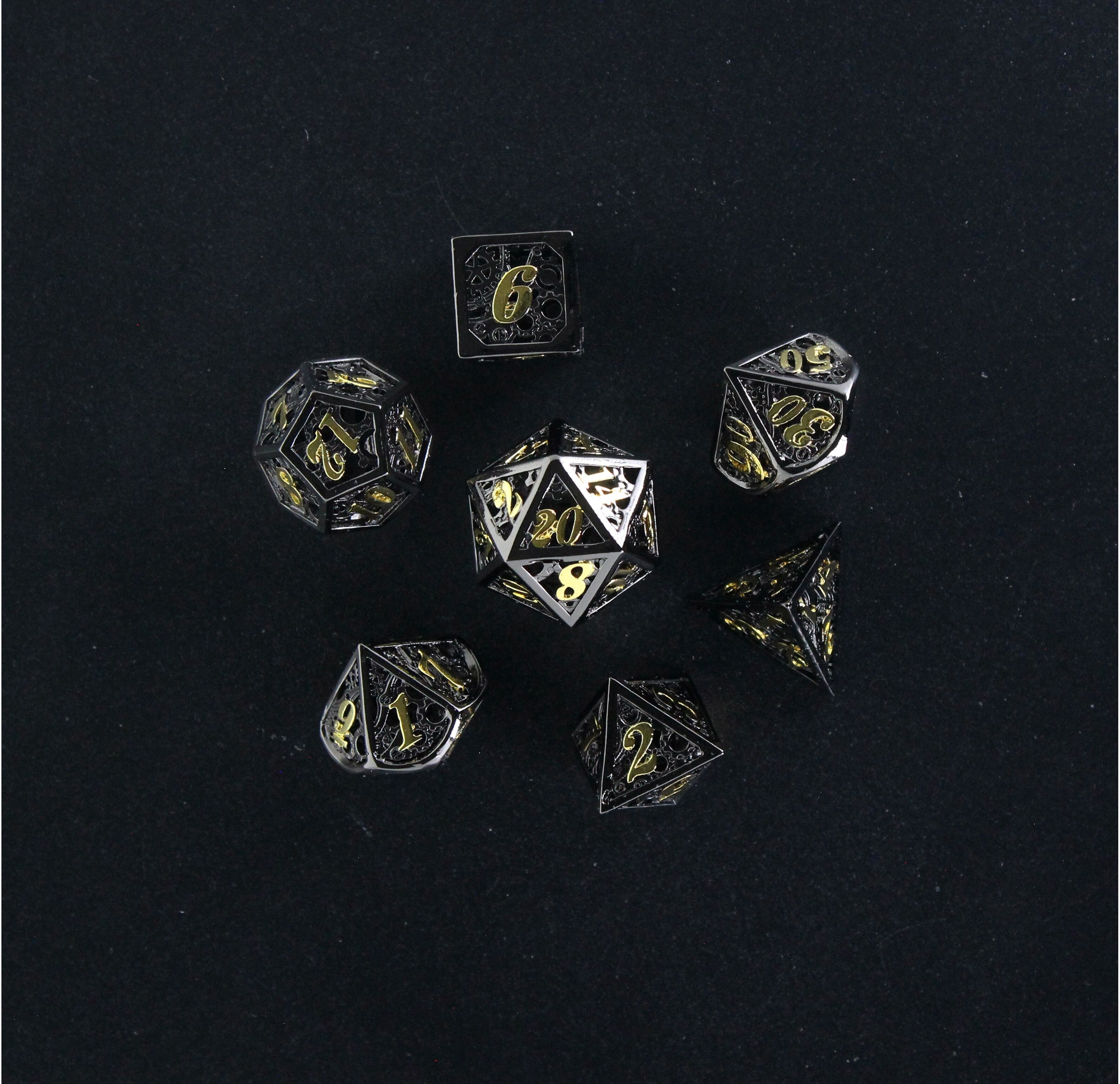 Hollow Metal Steam Punk Black w/Gold Set of 7 Dice