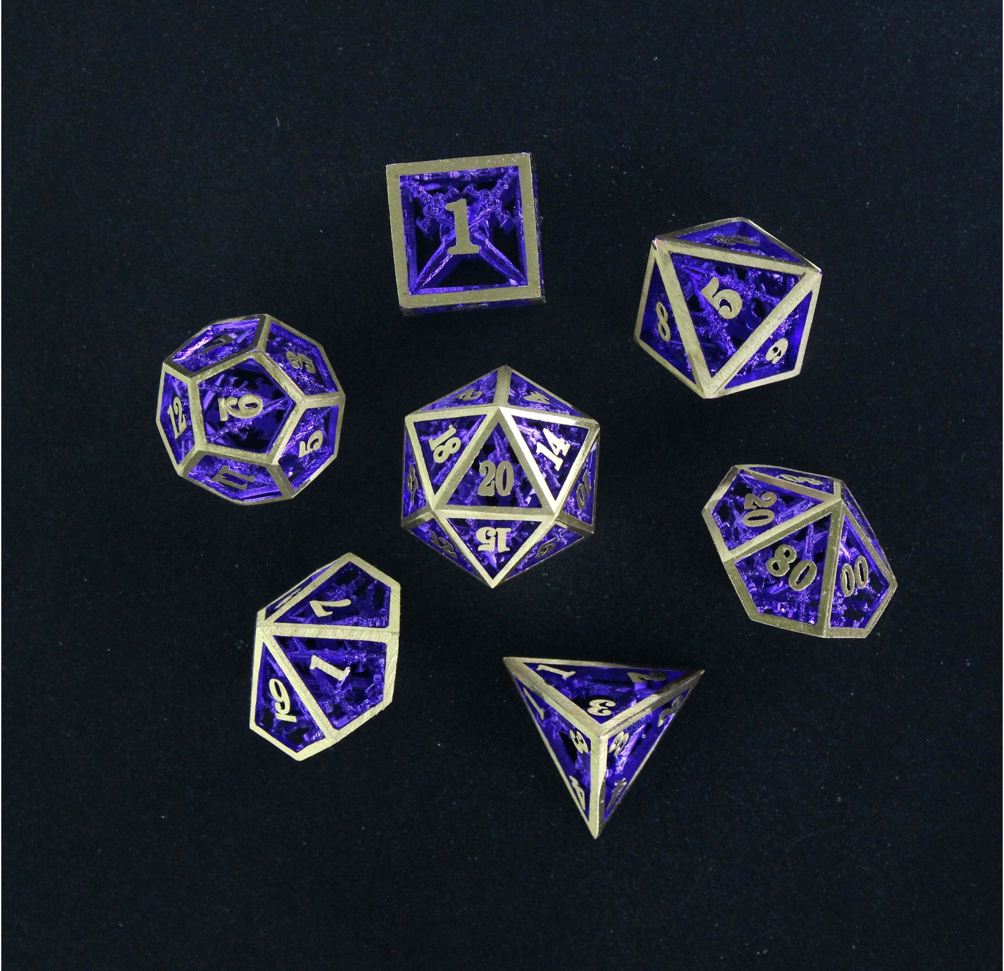Hollow Metal Sword Purple w/Bronze Set of 7 Dice