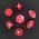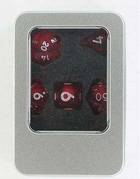 This seven-piece polyhedral dice set features transparent red resin with a liquid core that swirls with sparkling glitter as you roll. Each die catches the light beautifully, creating a dynamic shimmer that brings a touch of magic to every game. Includes D4, D6, D8, D10, D%, D12, and D20.