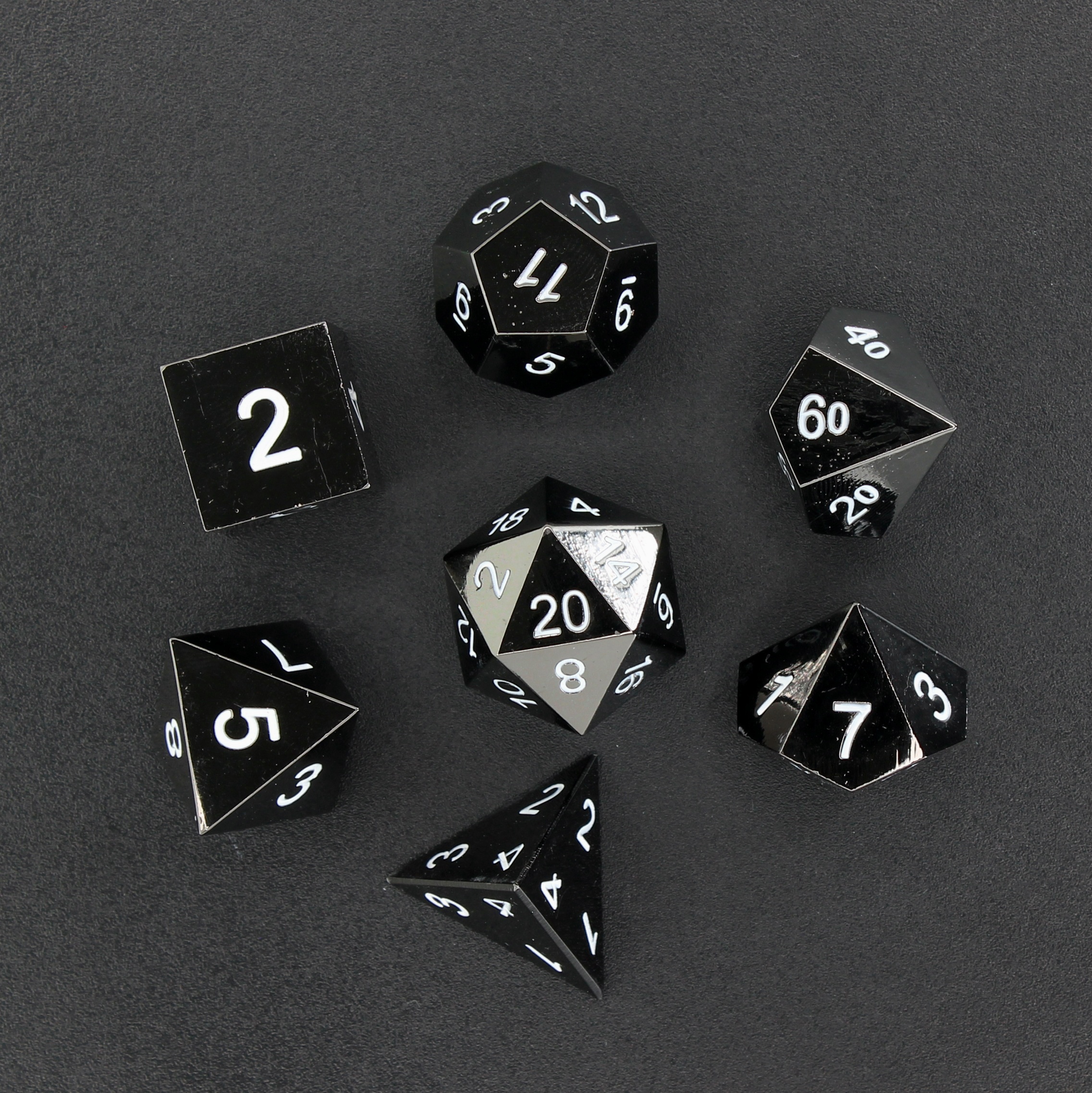 Home/Dice/Solid Metal Dice/Black Metal Dice with White font Set of 7 Polyhedral Dice