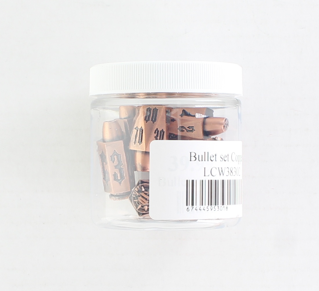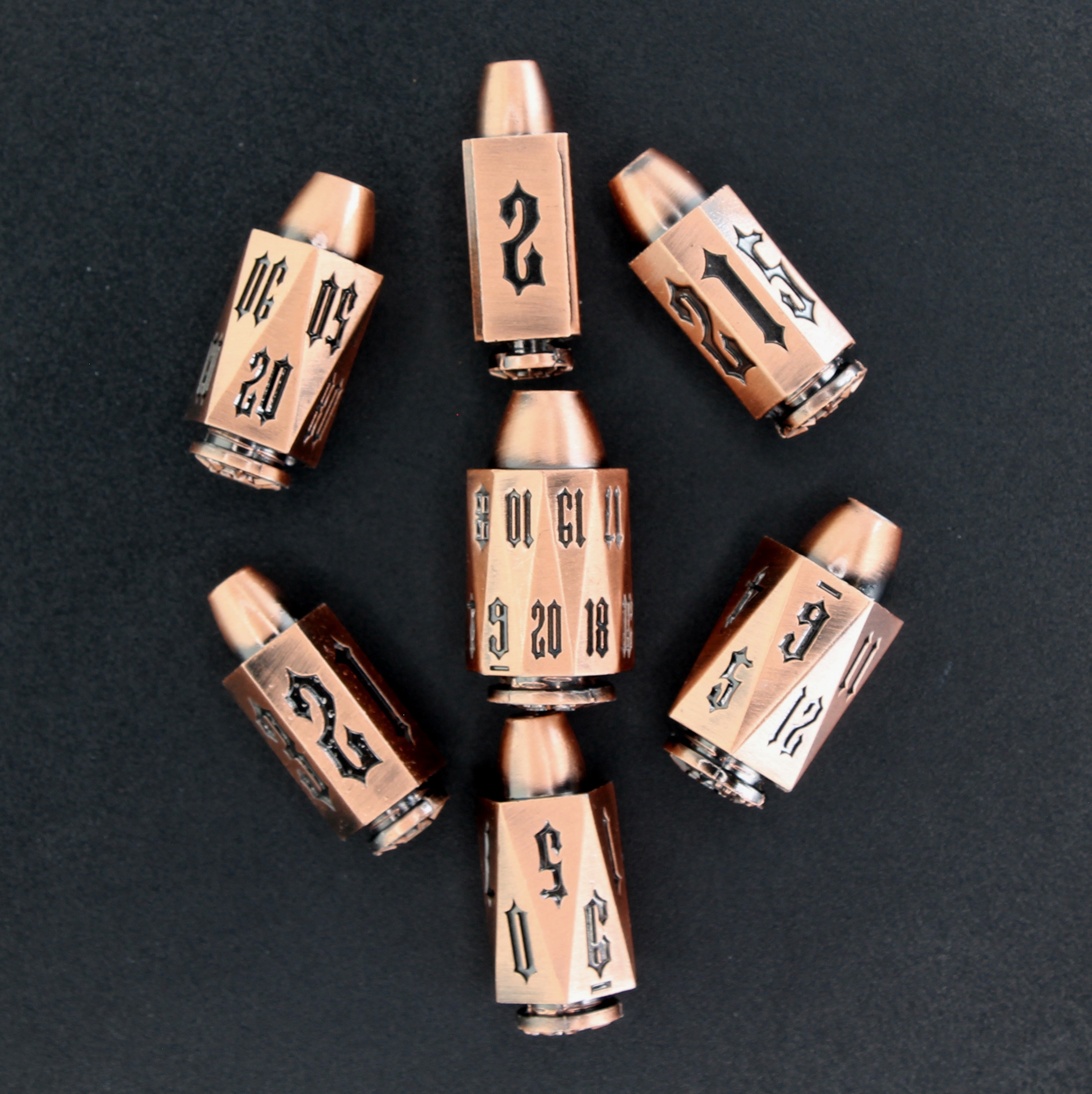 Home/Dice/Solid Metal Dice/Copper Metal Dice Bullets Set of 7 Dice
