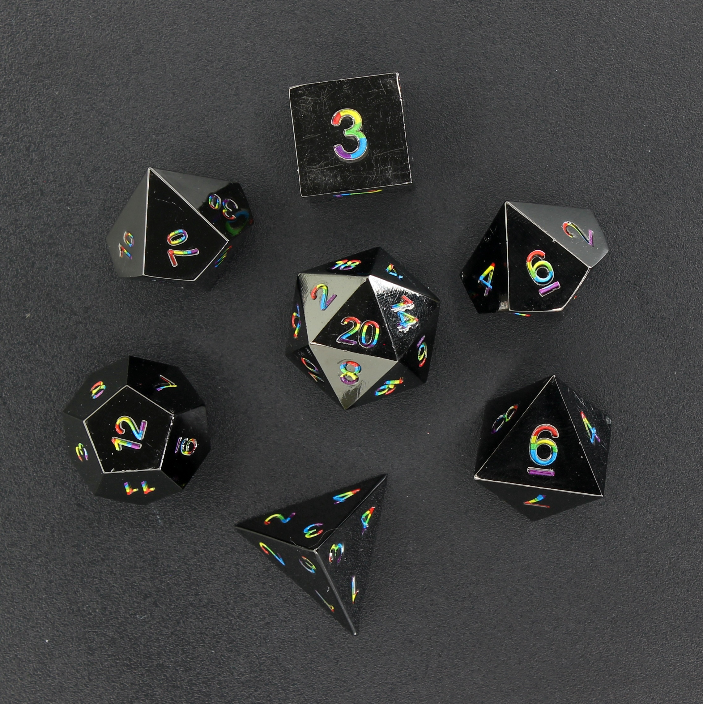 Dark Rainbow Set of 7 Polyhedral Metal Dice