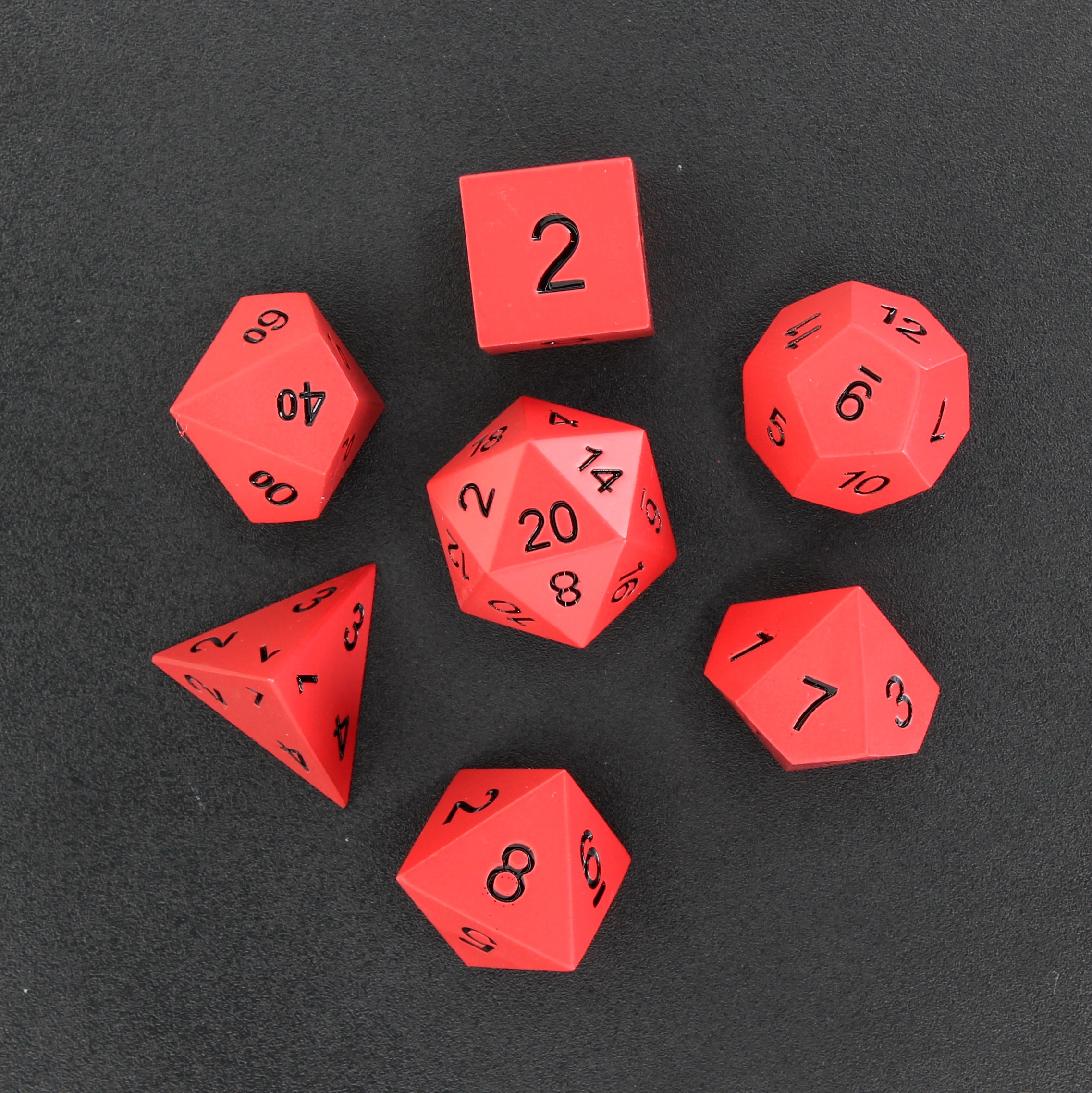 Red Metal Dice Set of 7 Polyhedral Metal Dice