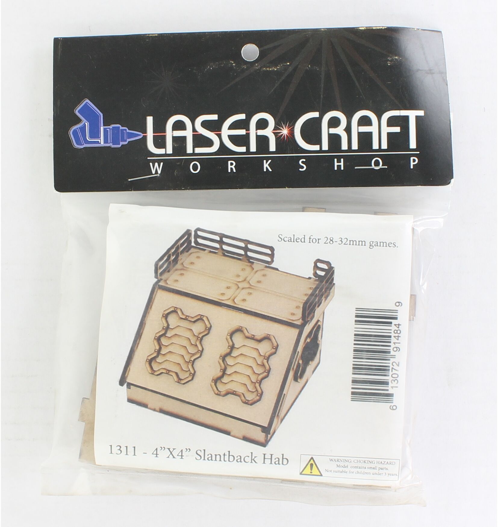 The 4"X4" Slantback Hab Housing is fully compatible with our Sector 38 Blockhouses and other terrain sets. It features the same removable roofs for playable interiors, and may be stacked as the upper level for any of our regular Habs. Designed for 28mm miniatures. Made of sturdy 3mm MDF board. Kits ship unassembled and unpainted.